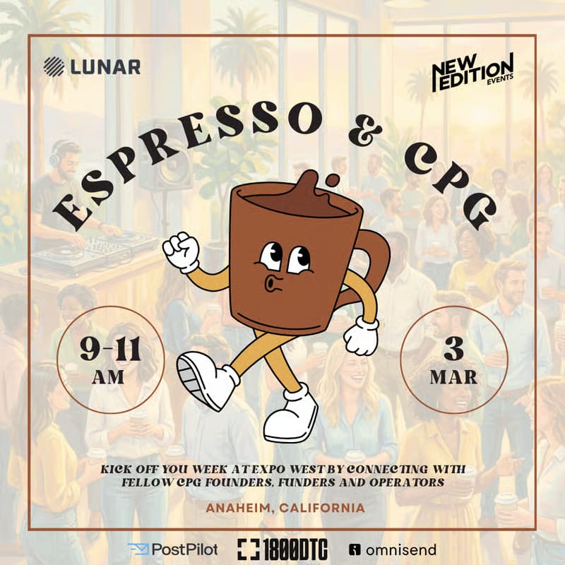 We’re teaming up with Lunar Solar Group + New Edition to host a coffee and DJ morning session for CPG founders, operators, and investors. Free Espresso. Music on. High-leverage conversations before the show floor chaos kicks in. You don’t want to miss this. Spots are limited + approval required.