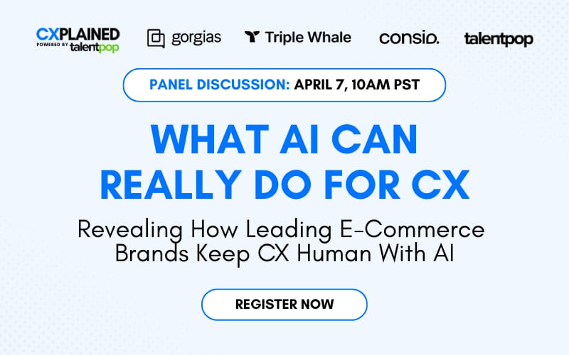 A panel with leaders from Gorgias, Triple Whale, Consio, and TalentPop built for CX and ecommerce leaders who are done with the AI hype and want to know what actually works. The conversation focuses on where AI creates real value in support today, how to keep customer conversations feeling human at scale, and what separates genuinely helpful AI from the stuff that just adds noise.
