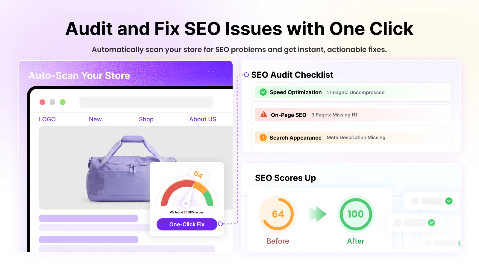 From scanning broken links to bulk editing image alt tags and meta descriptions, SEOWILL simplifies day-to-day SEO tasks. The tool supports automated site audits, on-page checks for up to 1,000 products, and AMP support to enhance mobile performance and overall site speed.